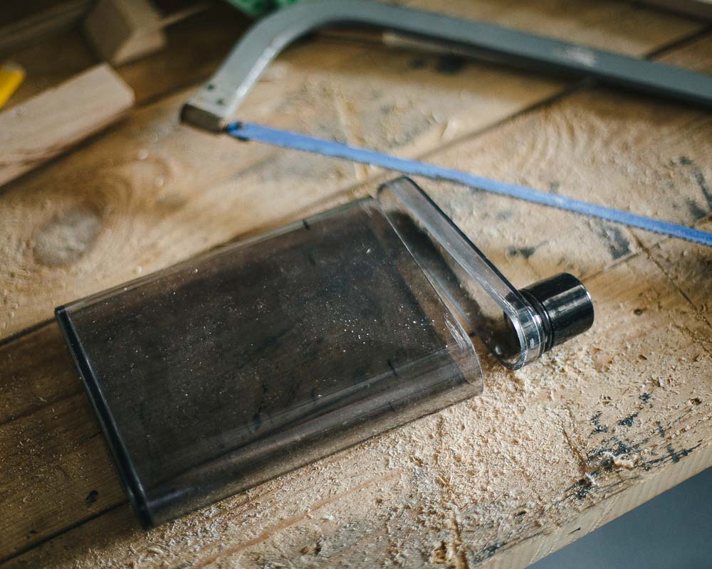 • Using the hacksaw carefully cut the top of the bottle along the marked line. This is probably the most finicky bits of the build. Just take your time…