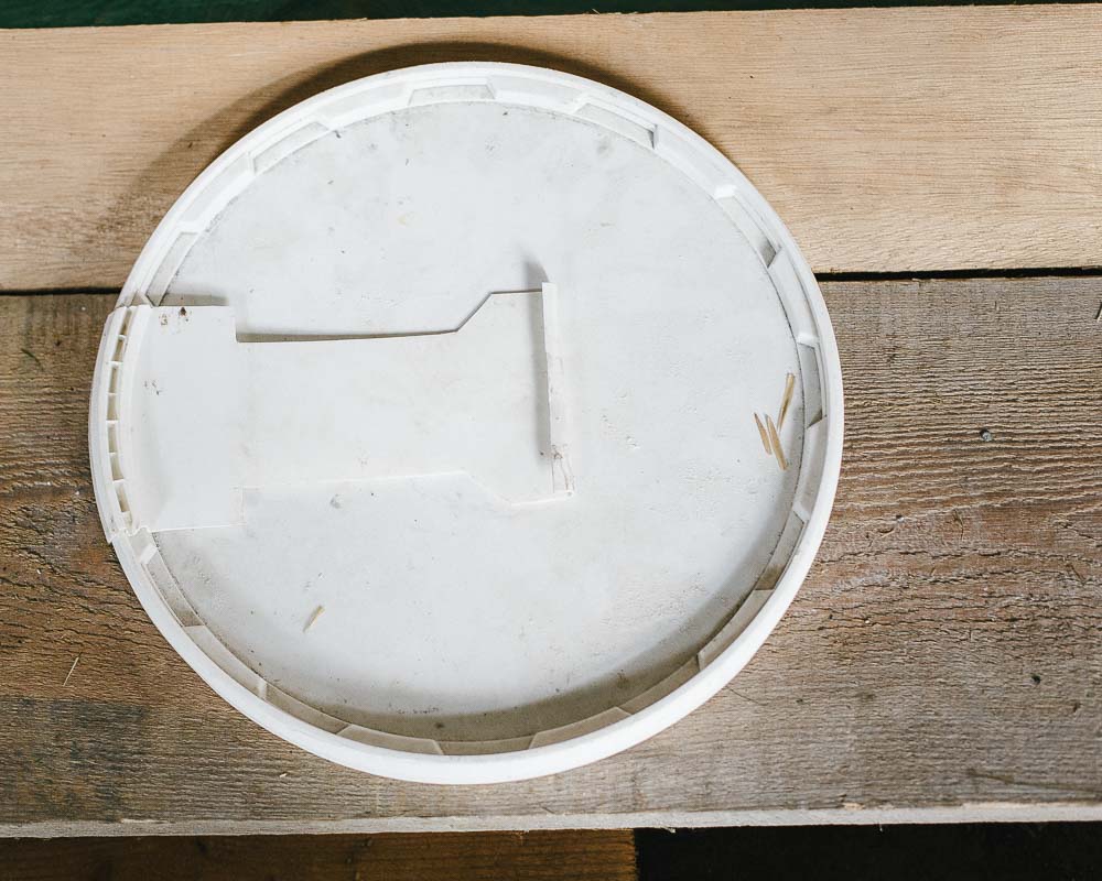 • Cut a piece of plastic from the large piece. In my case I used the edge of the lid as a Grip for the paddle. Make sure the plastic is thick enough of the paddle will be too floppy.